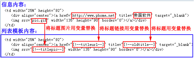 將⑤中被<!--list.var*-->替代的信息內容,用列表內容模板支持的變量表示,得到列表內容模板。