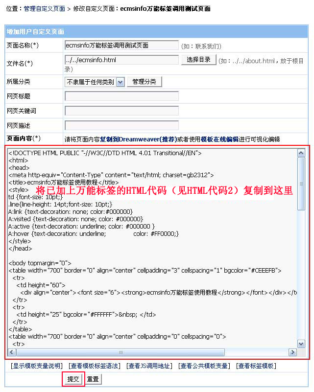 而“增加標簽模板”頁面的未知選項包括“頁面模板內容”和“列表內容模板”,下面我們將逐一分析: |