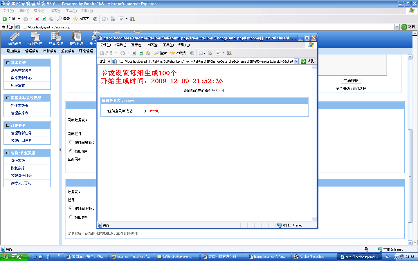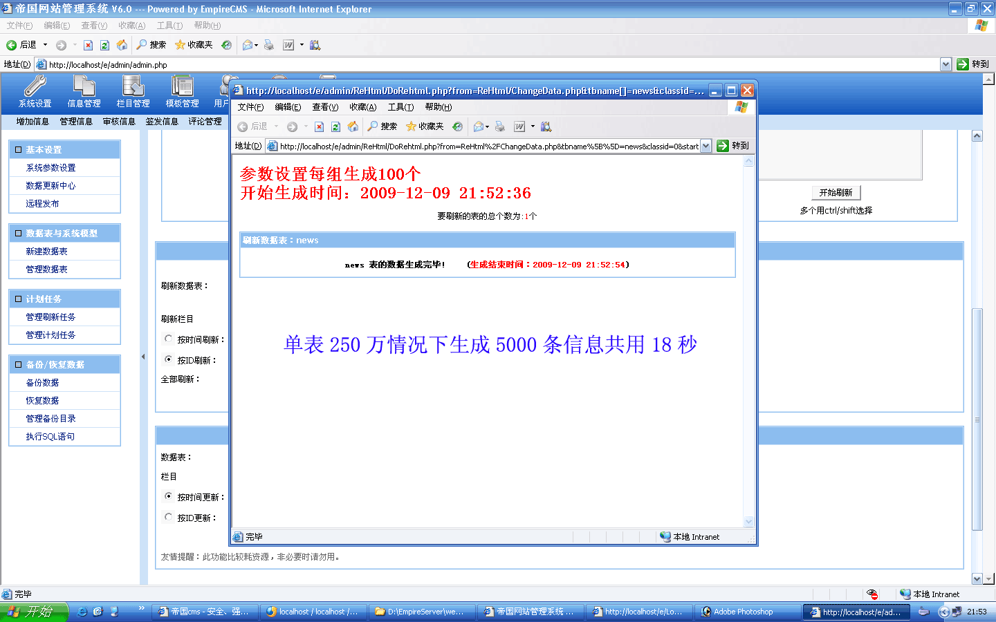 ![]() 生成過程截圖: ![]() 5000條生成時間:18秒 生成后的欄目目錄: |