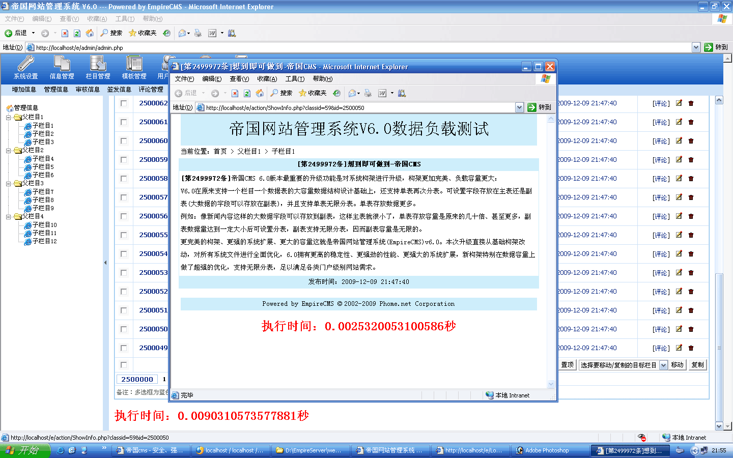 | 5、測試在使用內容動態頁的數據讀取速度:0.0025秒 | ||||||||||||||||||||||||||