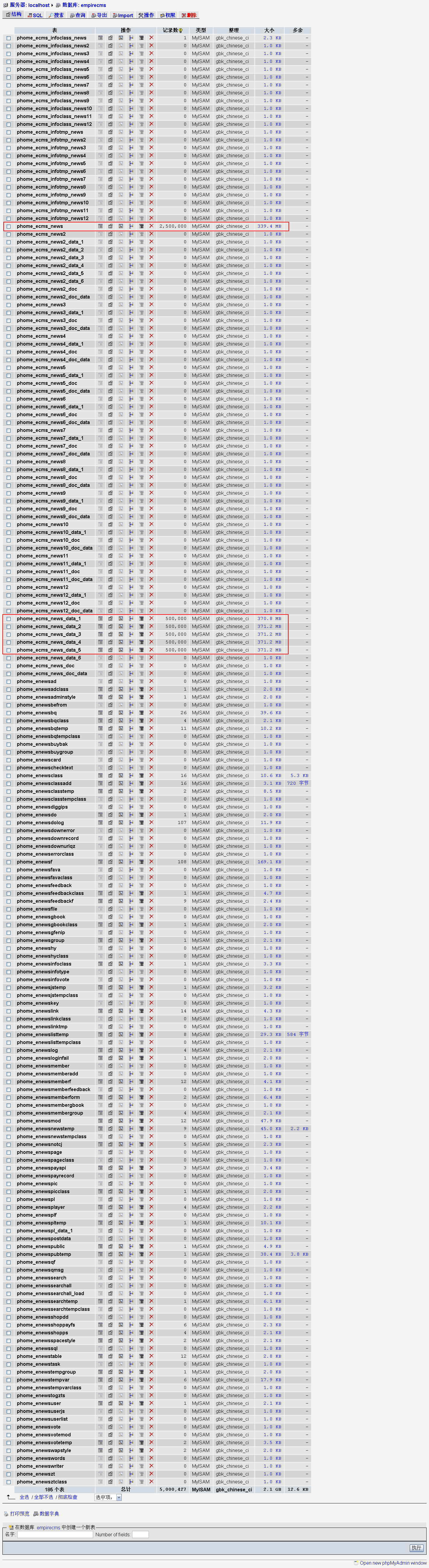 | 2千萬數據、17.3GB數據庫用帝國CMS6.0分表合理存放(第五頁) |