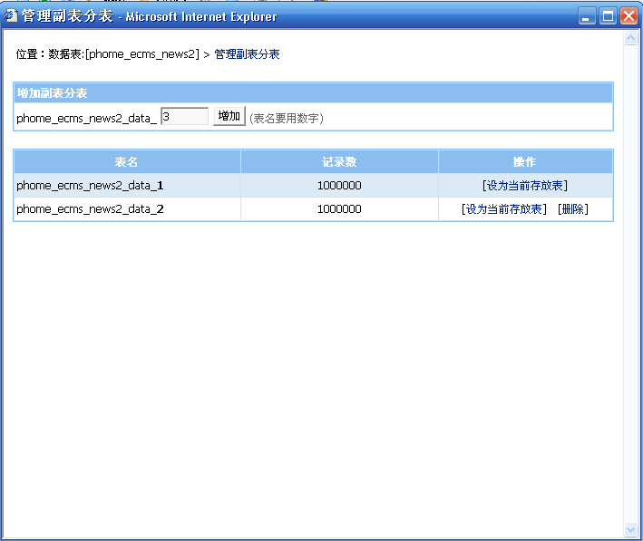 | 2千萬數據、17.3GB數據庫用帝國CMS6.0分表合理存放(第九頁) |
