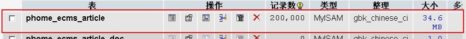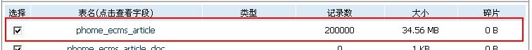 經測試,20萬數據(每篇文章的內容大約有2050個字節)在不采用內容存文本功能的情況下,數據庫占用近1GB;而采用了內容存文本功能后,數據庫僅占34.6MB,如下圖: