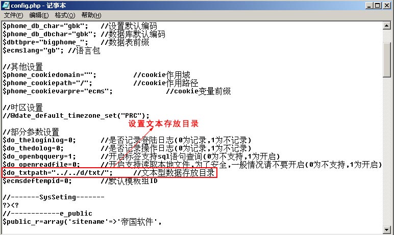 存放目錄可自定義:你可以設置文本數據存放到哪個目錄,包括WEB訪問不到的地方。設置只需改e/class/config.php的參數即可,如圖: