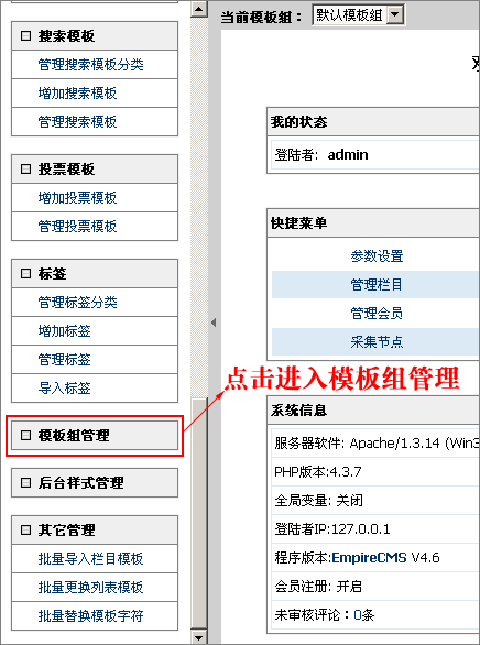 帝國CMS4.6才有模板導出導入功能。先前用過的用戶估計沒看到,所以整理了個導出模板教程。