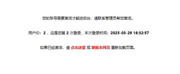 六、登錄者刷新提示登錄需激活網(wǎng)頁,完成后臺登錄。