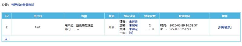 管理員確認登錄用戶ID、用戶名、登錄次數(shù)、登錄時間、登錄IP等信息,如果沒有問題,點擊“同意登錄”,然后通知登錄者刷新網(wǎng)頁就可以登錄成功。