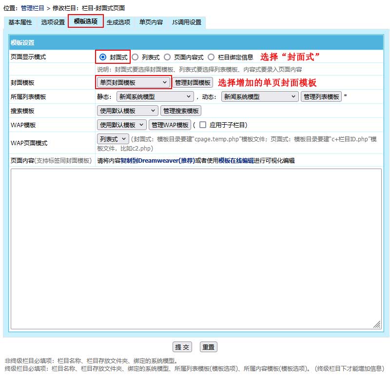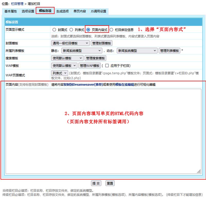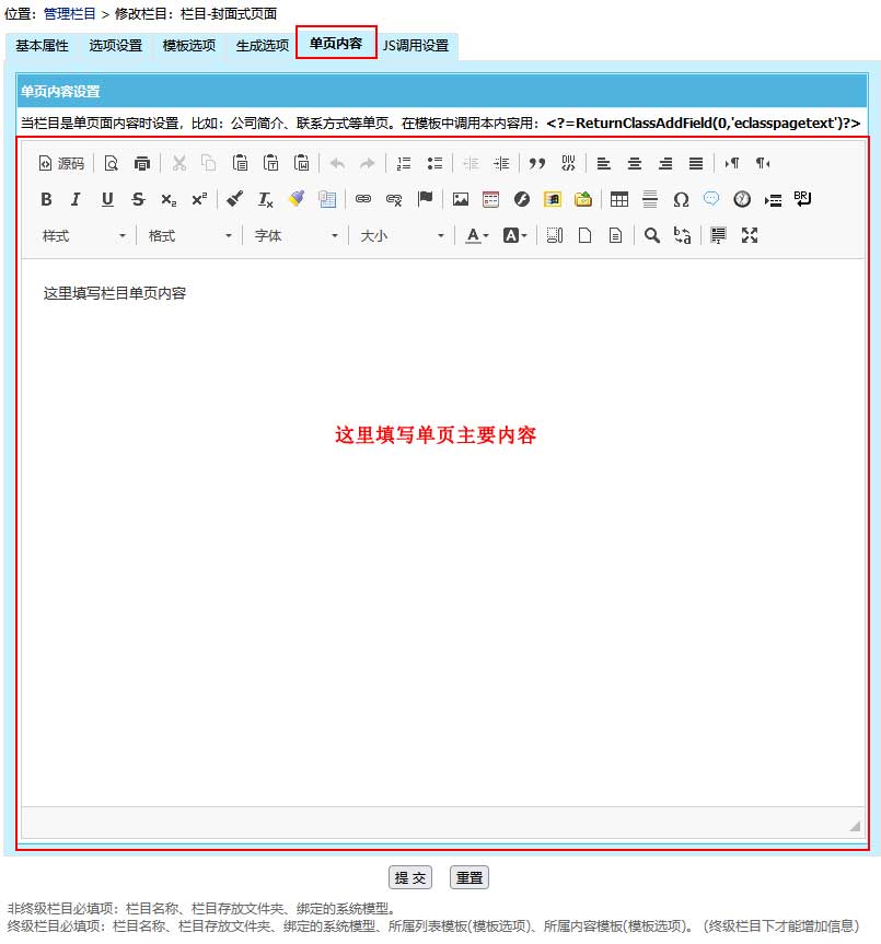 帝國CMS制作單頁一般用欄目或自定義頁面實(shí)現(xiàn)。本文主要介紹用欄目實(shí)現(xiàn)單頁模式的3種方法: