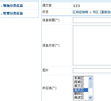 1、提交信息選擇地區(qū)修改:系統(tǒng)設置-》數(shù)據(jù)表管理-》管理字段-》修改myarea字段的初始值。