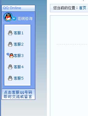 2、在要顯示QQ在線客服的頁面(比如:首頁)最底部加上如下代碼: <script src="[!--news.url--]e/extend/qqkf/"></script>