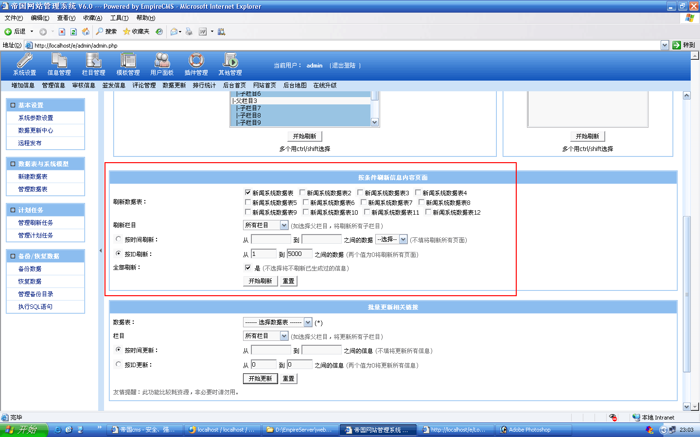 6.0在大數(shù)據(jù)下的優(yōu)勢非常明顯,生成內(nèi)容頁、動態(tài)內(nèi)容頁效率非常之快且不受數(shù)據(jù)量影響,解決了CMS負(fù)載最大的問題,并且使用按表管理信息列表速度很快,單表幾十萬和幾百萬數(shù)據(jù)沒有明顯區(qū)別。