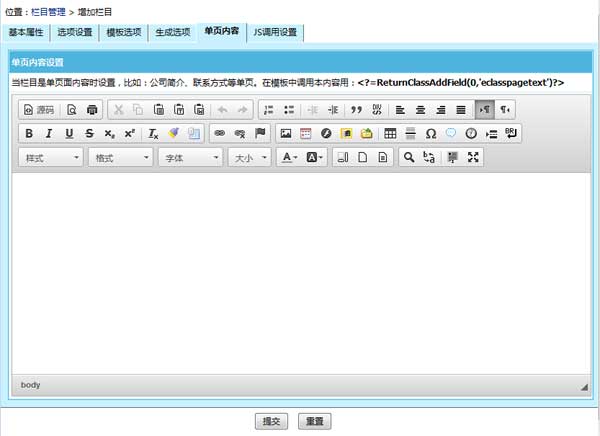 帝國CMS7.5版欄目新增單頁內(nèi)容設(shè)置,做單頁更方便