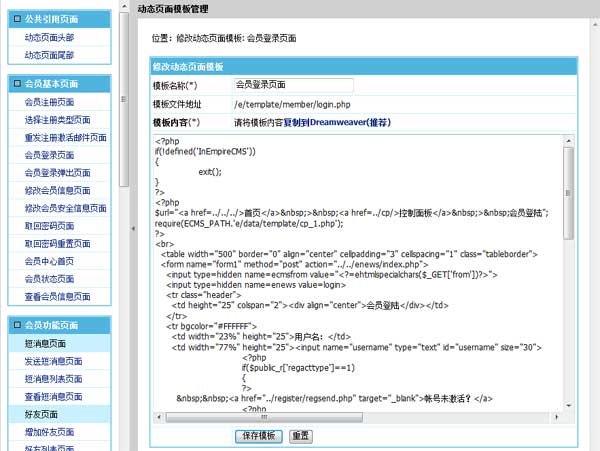帝國CMS7.0動態頁面模板支持后臺直接修改,并且可分類分開管理,查找和修改相應模板更方便。