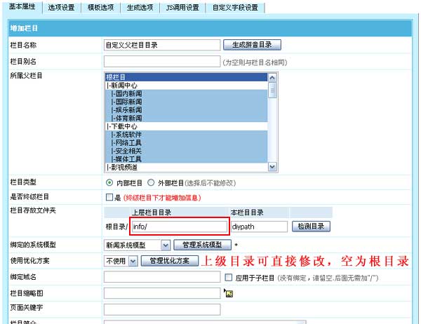 帝國CMS 6.6版欄目支持直接自定義上級存放目錄,更靈活。至此欄目上級目錄、專題上級目錄和內容頁存放目錄都可以自定義。