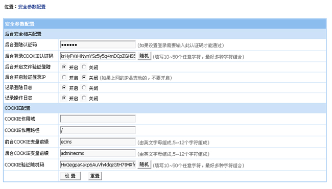V6.5配置文件安全設置可直接后臺配置,更直觀更方便。并且對于安全性要求更高的用戶也可以選擇是否開啟在線直接配置,修改e/class/config.php里的“$do_openonlinesetting”參數。