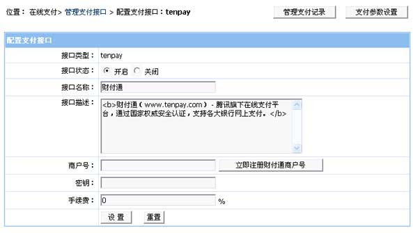 后臺(tái)支付接口管理